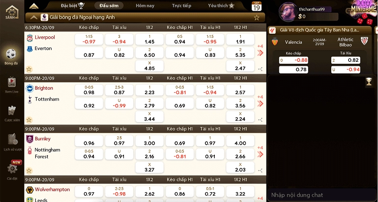Sảnh cá cược thể thao của nhà game mang đến một trải nghiệm đột phá với nhiều bộ môn thể thao và các loại kèo cược phong phú. Người chơi có thể lựa chọn từ cược chấp, cược tổng số bàn thắng, cược đội thắng, và nhiều loại kèo khác.